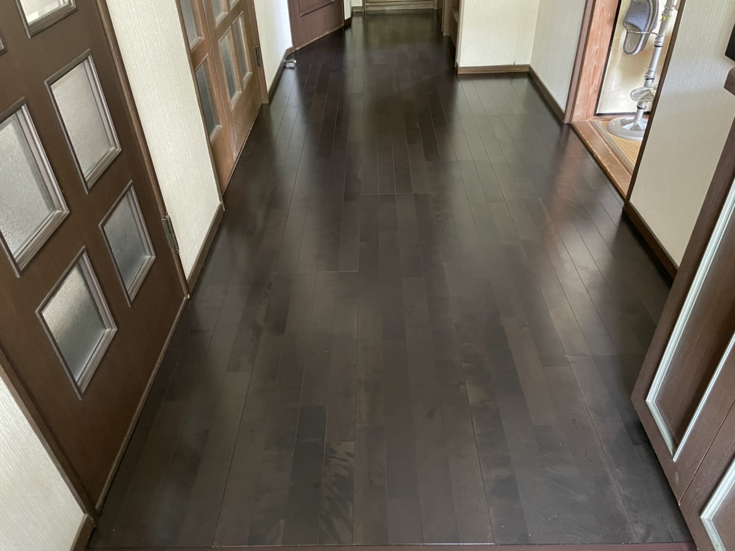 計3日工事日数をいただき、歪んでいたフローリングと洗面所の床の内装リフォームは完成しました。