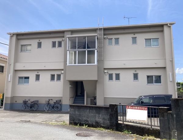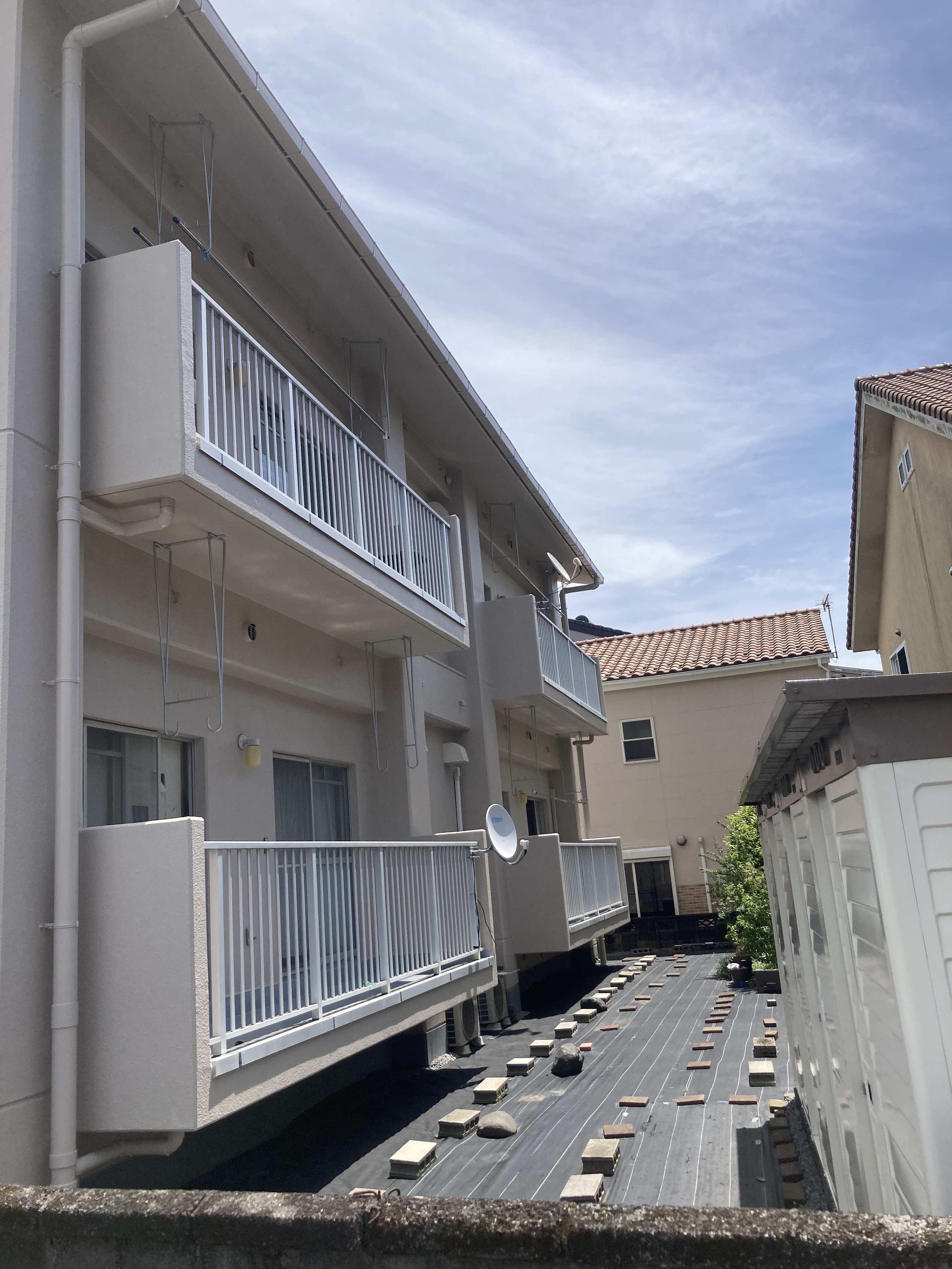 大規模改修工事 2023-05-22 静岡県 アパート 外壁塗装 防水工事 静岡県 T様のアパート改修工事を行いました。工事内容は、塗装工事・シーリング工事・左官工事・砂利敷き工事・防水工事・金物工事を行いました。落ち着いた印象のカラーに仕上げました。BeforeAfter
